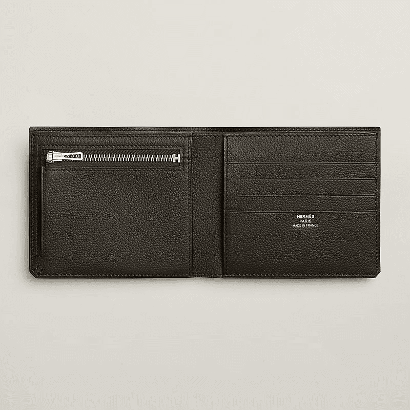 Kompakte Brieftasche aus Evercolor-Kalbsleder – Kontrastierende Sattlernähte und handgenähtes “H en Biais”-Detail – Portemonnaie mit Reißverschluss – Flache Tasche – Vier Kreditkartenschlitze Dieser Artikel ist handgefertigt. Die genauen Abmessungen können daher variieren. Hergestellt in Frankreich Metallicfinish: Palladiumauflage Abmessungen: L 11 x H 9,2 x T 2,2 cm