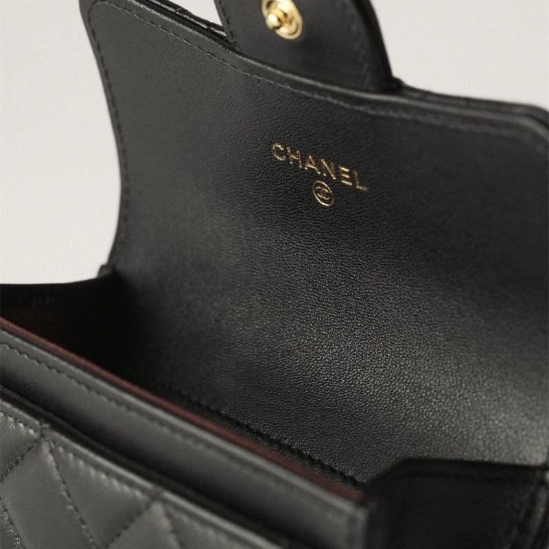 Material Lambskin & Gold-Tone Metal Colors Black Dimensions 3 x 4.4 x 0.8in/7.5 x 11 x 1 cm