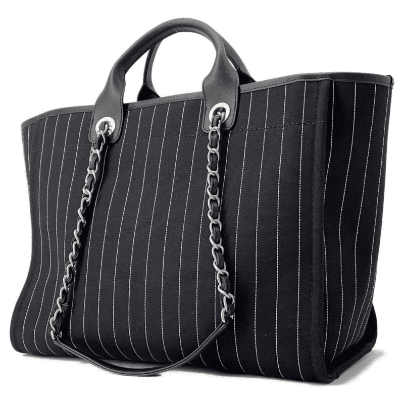 CHANEL Deauville 2wayTote Bag Black A66941 Cotton Leather