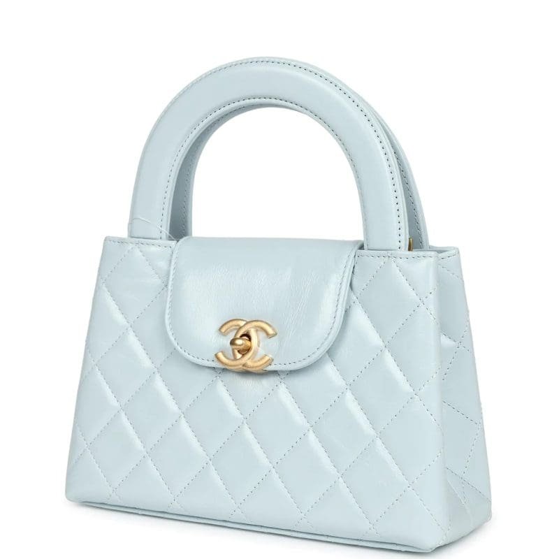 Chanel Small Kelly Shopper Light Blue Shiny Aged Calfskin Brushed Gold Hardware