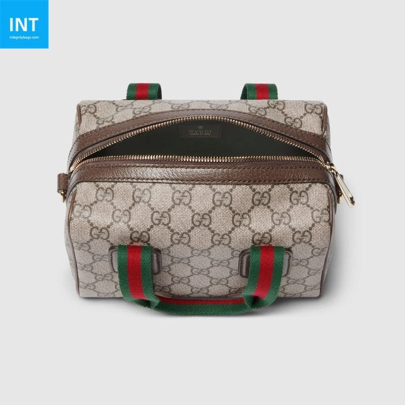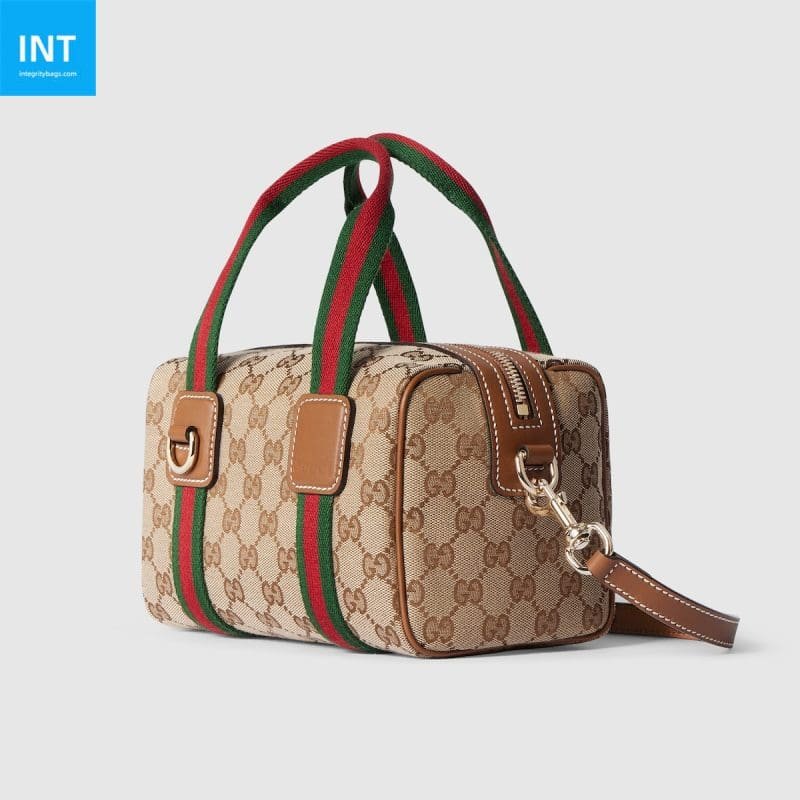 Inspired by the design of the Gucci travel bag, the Mini GG Handbag continues to blend familiar Gucci codes with its travel roots through a range of materials. In this model, soft canvas underscores the effortlessly elegant silhouette while highlighting the signature GG motif. Product information Beige and brown GG canvas Brown leather trim Light…