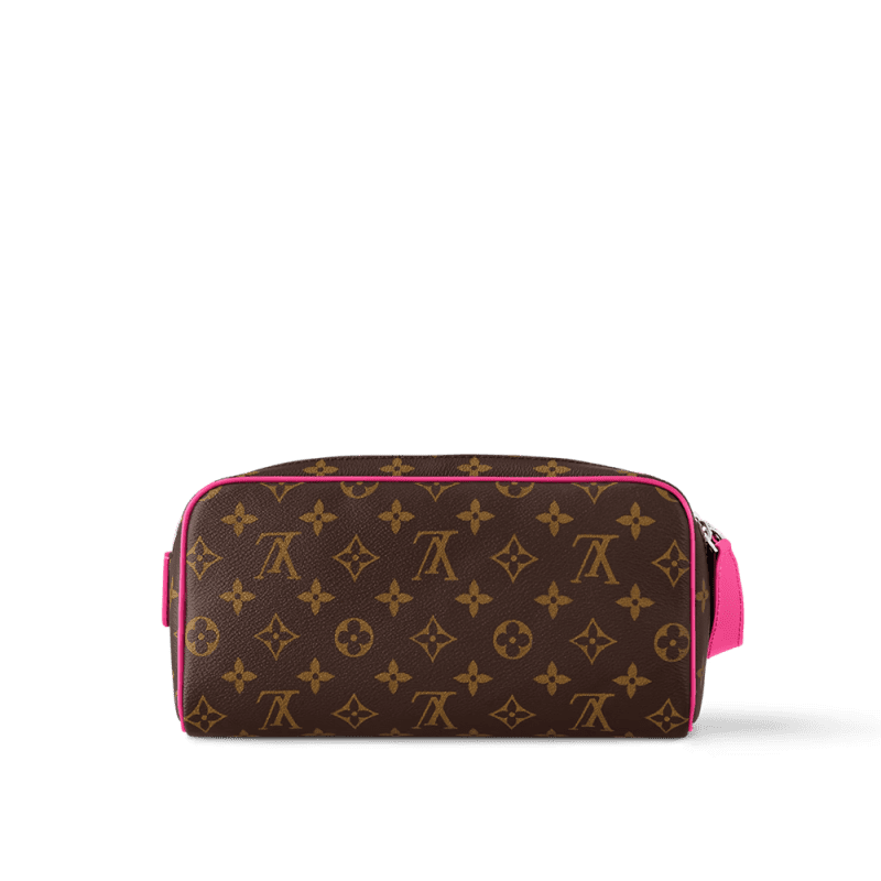 Sturdy and practical, the Dopp Kit in Monogram Macassar coated canvas is adorned with colored piping and colored leather on the handle attached to the double zipper. Designed for storing grooming essentials and toiletries, it has a washable lining in the same color as the color of the exterior details. 11 x 5.9 x 6.5 inches/28…