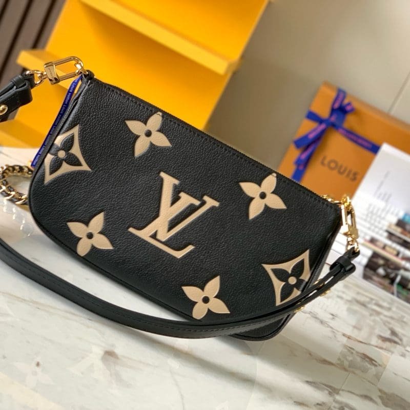 Made from cream-colored Monogram Empreinte leather, the Multi Pochette Accessoires handbag is composed of two pouches attached together. Both pouches are lined with matching cream-color microfiber, with the larger pouch also including an inside pocket. Thanks to a chain and a strap, both removable, this bag becomes very verstaile. 9.8 x 5.7 x 1.8 inches/25 x…