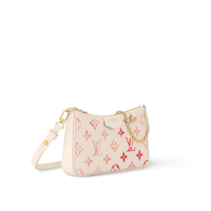 This edition of the Easy Pouch on Strap belongs to the Sunrise Aquarelle collection. It is crafted from Monogram Empreinte leather, which is digitally printed with a gradation of oranges and pinks evoking a watercolor painting. Large enough for everyday essentials, this bag has a removable chain and a removable, adjustable strap for shoulder or…