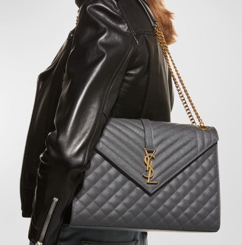 Saint Laurent “Gaby” crossbody bag in quilted lambskin leather YSL logo lettering Chain/leather crossbody strap Zip top closure Golden hardware Approx. 4.7″H x 7.1″W x 1.2″D/12 x 18 x 3cm Made in Italy