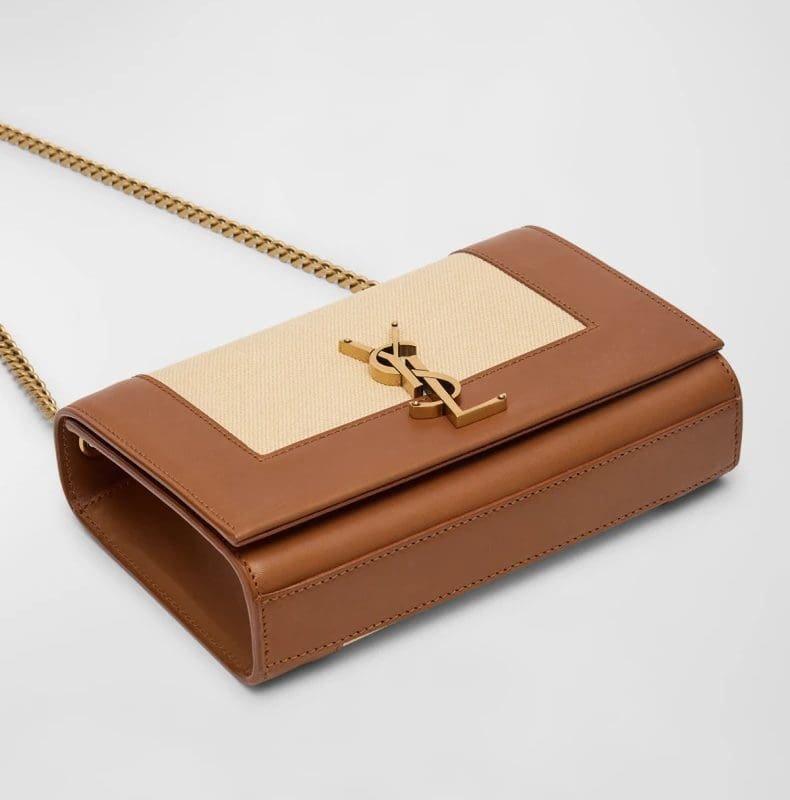 Saint Laurent Kate Small YSL Wallet on Chain in Linen and Leather