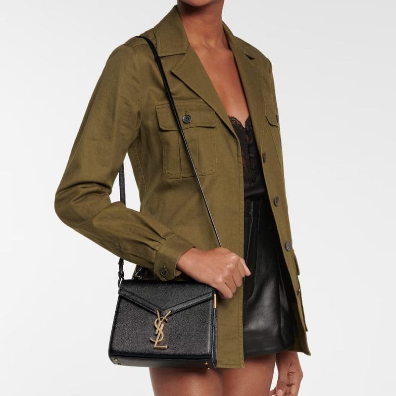 small hobo bag with a leather drawstring closure adorned with the signature CASSANDRE charm, lined in tonal suede. This elegant, supple bag features a removable card holder and adjustable shoulder strap for bespoke carry options. suede lining bronze-toned hardware DIMENSIONS: 30 X 25 X 3 CM / 11.8″ x 9.8″ x 1.2″ STRAP DROP: 24…